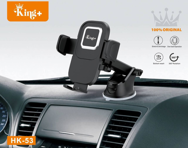 هولدر موبایل/ هلدر موبایل کینگ پلاس +King مدل HK-53 یک پایه نگهدارنده مخصوص تلفن همراه قوی و با کیفیت که با وزن سبک و کوچک است. یکی از ویژگی های منحصر به فرد آن چرخش 360 درجه ی آن است که به راحتی می توانید آن را روی داشبورت ماشین و یا هر سطوح دیگری نصب نمایید و از دیدن فیلم و عکس در موبایل خود لذت ببرید. این پایه یکی از بهترین و کاربردی ترین لوازم جانبی های گوشی می باشد.