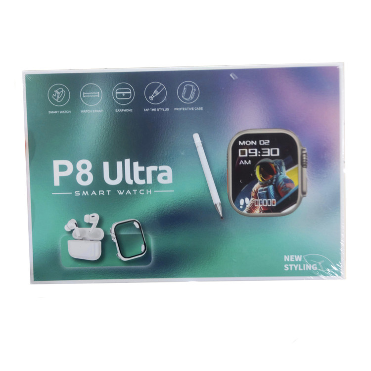 ساعت هوشمند الترا، ایرپاد پرو، قاب محافظ ساعت، قلم لمسی، ساعت زنانه، بند ساعت رولکسی(فلزی)، ۵ عدد بند اوشن، کابل شارژ وایرلس و دفترچه راهنما