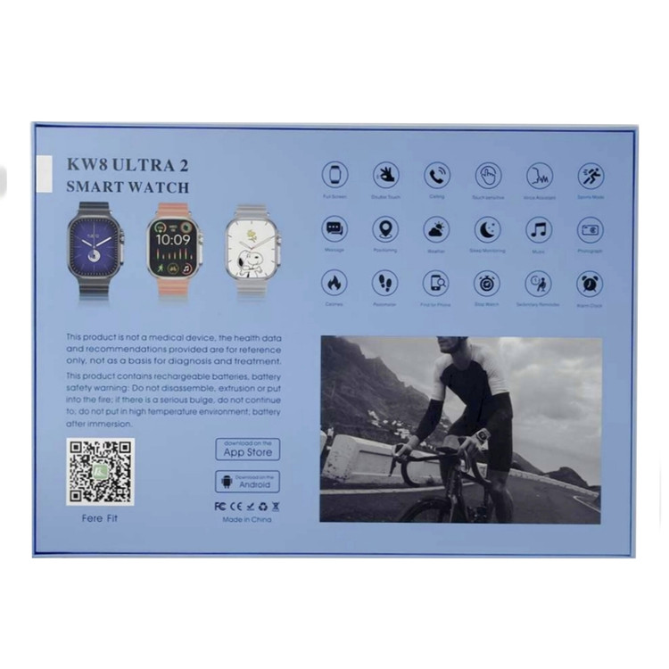 پک ساعت هوشمند الترا مدل KW8 ULTRA2 محصولی از برند KEQIWEAR می باشد. این مدل دارای یک ساعت هوشمند با سایز ۴۹ میلیمتر و پشتیبانی از شارژ وایرلس می باشد. تعداد 7 بند ساعت از جنس سیلیکون باکیفیت در تنوع رنگی و طرحی مختلف در این پک استفاده شده که میتوانید در طول هفته به دلخواه خودتان با ساعت هوشمند kw8 Ultra2 ست کنید.از امکانات و ویژگیهای این ساعت هوشمند میتوان به قابلیت برقراری تماس و مکالمه، دریافت اعلان و پیامک، اندازه گیری ضربان فلب،فشارخون، اکسیژن خون، گامشمار، دوچرخه سواری، پخش موزیک، تایمر تنظیم خواب، ماشین حساب و کلی برنامه کاربردی دیگر اشاره کرد.