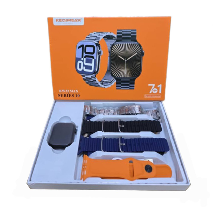 ساعت هوشمند سری۱۰ مدل KEQIWEAR KW32 MAX با 7 بند فلزی و سیلیکون