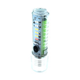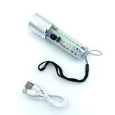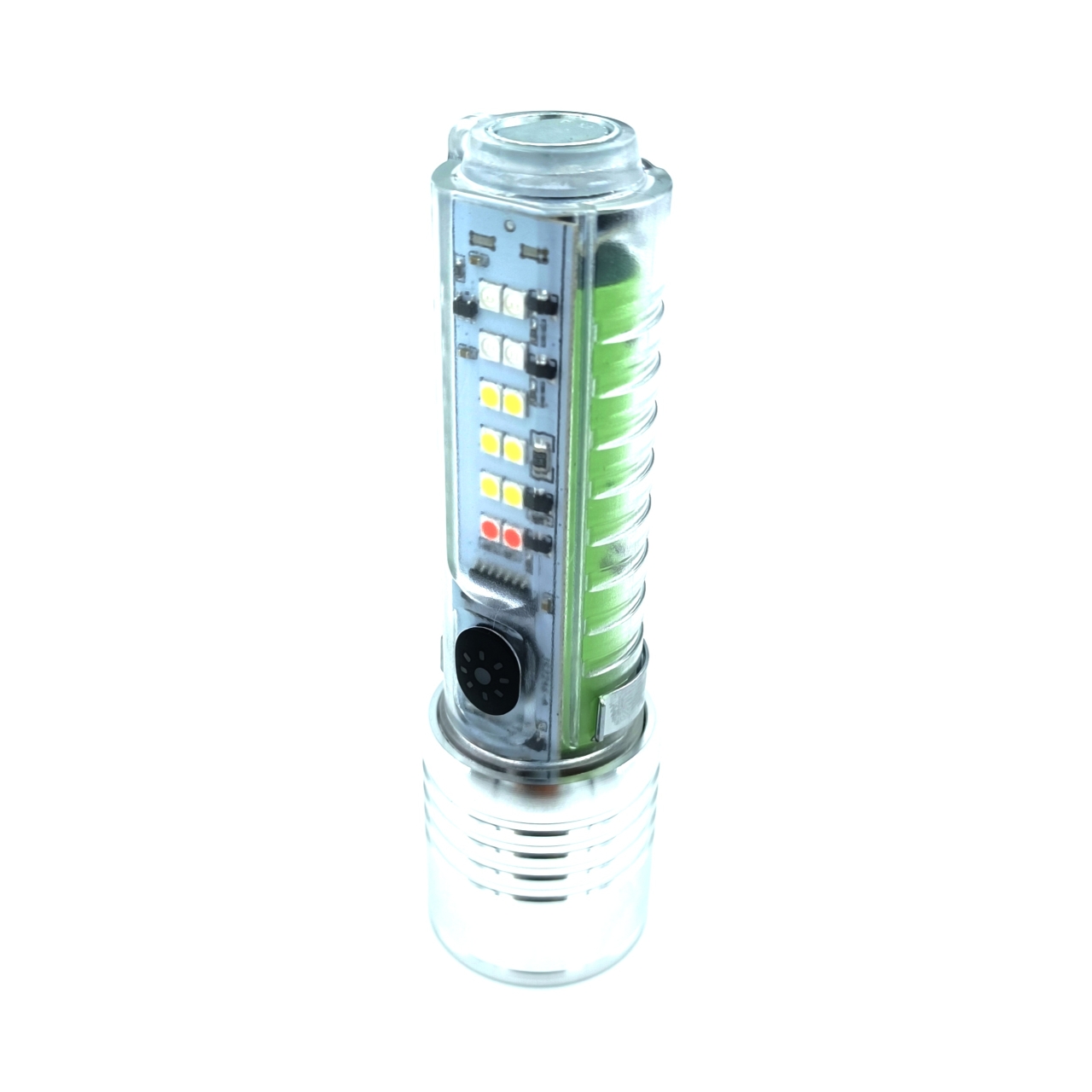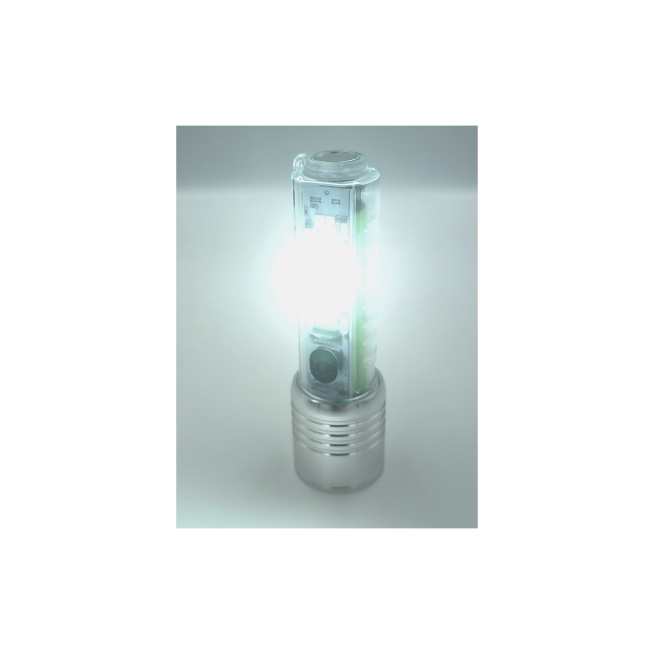 چراغ قوه شارژی چندکاره زوم دار مدل 520A دارای چندین حالت پخش نور می باشد و طراحی فوق العاده ی آن باعث شده که نظر کاربران زیادی را به سمت خود جلب کند. این چراغ قوه وزن سبکی دارد و استفاده ی طولانی مدت از آن باعث خستگی نمی شود و به راحتی می توان آن را حمل و جابجا کرد. همچنین دارای کاربردهای مختلفی است و یکی از ویژگی های مهم آن، ضدآب بودن است که در زیر بارش باران مقاوم بوده و خراب نمیشود. بدنه این چراغ قوه کاملا شفاف بوده و هیچ رنگی ندارد. اما زمان روشن کردن نور کناری و یا با تاباندن نور به بدنه آن از خود بازتاب نشان داده و به رنگ سبز در می آید. چراغ led یووی این چراغ قوه در قسمت کناری آن بوده و برای کارهایی مثل تست اسکناس مناسب می باشد.