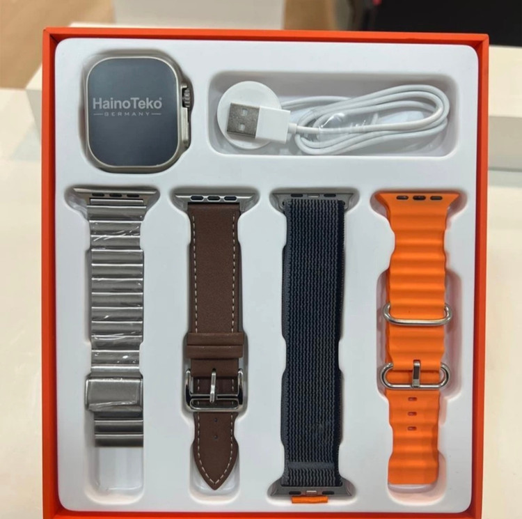 ساعت هوشمند Haino Tecko T94 Ultra Max سری 8 محصول شرکت هاینوتکو آلمان ضمانت اصالت این برند، یک برند آلمانی بوده که محصولات اقتصادی و باکیفیت خود را در چین مونتاژ میکند. تمرکزش را روی طراحی و تولید لوازم جانبی و تجهیزات الکترونیکی معطوف کرده و ساعت هوشمند هاینو تکو مدل T94 Ultra Max، یک نمونه از تولیدات پرفروشش میباشد. اگر به دنبال یک ساعت هوشمند مقرون به صرفه هستید که از قابلیت مکالمه تلفنی برخوردار باشد، کمتر ساعت هوشمندی با رده قیمتی Haino Teko T94 Ultra Max پیدا میکنید. دارای بند سرامیکی و فوق العاده زیبا مجهز به حسگرهای ضربان قلب ، کالری سنج ، اندازه گیری اکسیژن خون ، گام شمار ، اندازه گیری فشار خون ، کیفیت خواب و … قابلیت مکالمه دارای تاییده ضد اب IP68 نسخه بلوتوث 5.0 باتری 220 میلی آمپر ساعتی گر به دنبال یک ساعت و یک ایرپاد اقتصادی هستید، ساعت هوشمند Haino Tecko T94 Ultra Max سری 8 یک ساعت فول امکانات سری 8 را به شما معرفی میکنیم. کیفیت این ساعت ++A است و قابلیت های فراوانی نظیر فارسی سازی منو و خواندن پیام های فارسی را دارد که برای کاربران ایرانی اهمیت ویژه دارد.