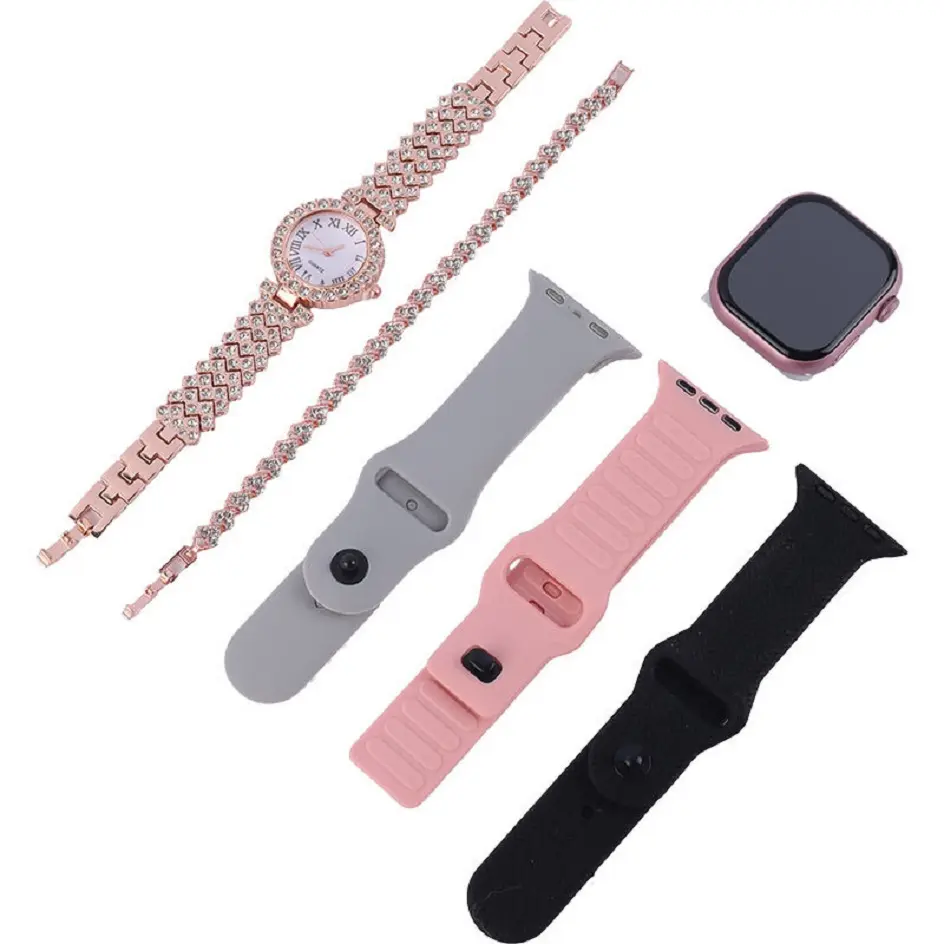 ساعت زنانه، دستبند فلزی، کابل شارژ، بند سیلیکونی
