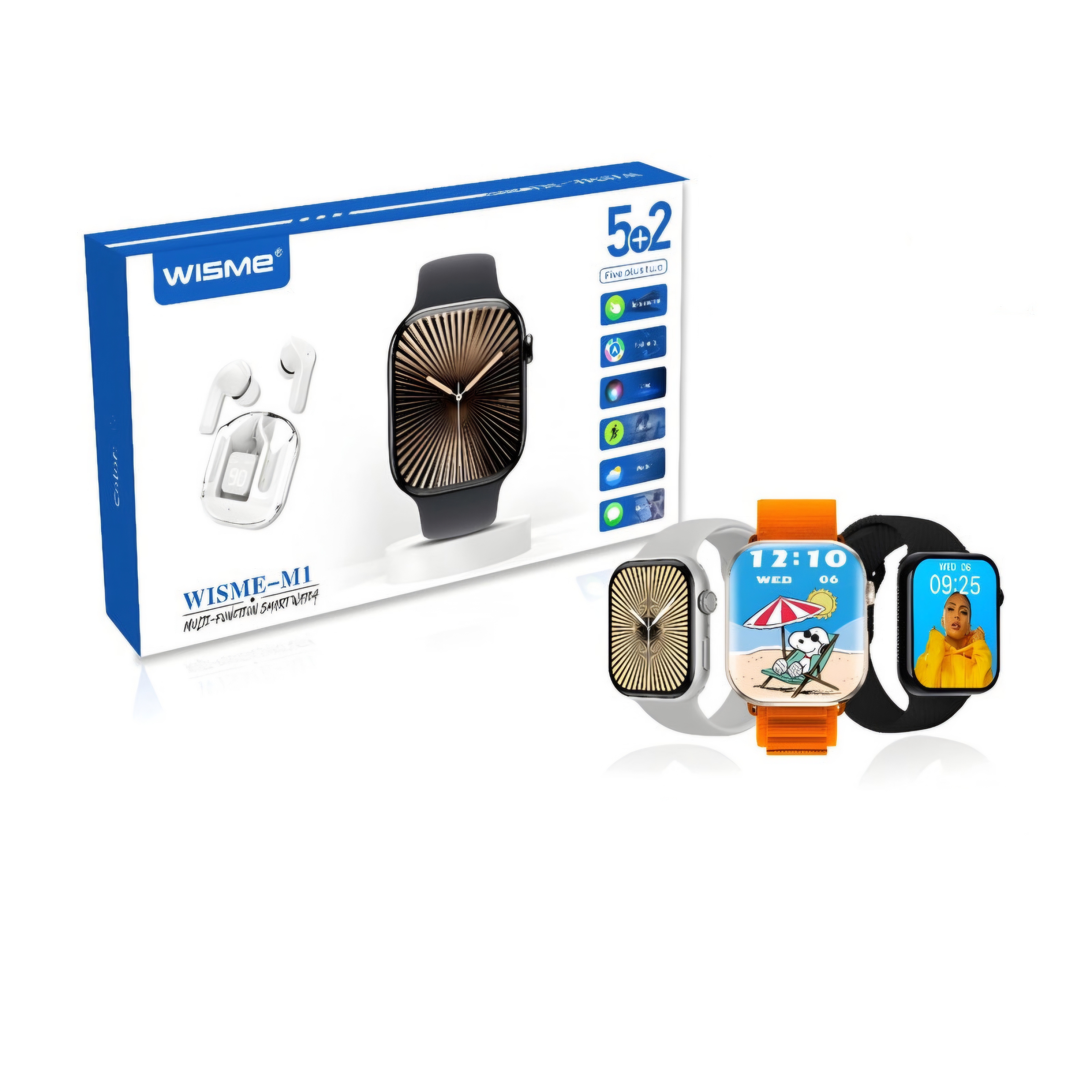 ساعت هوشمند سری ۱۰ ویسمی مدل WISME-M1 مناسب برای آقایان و بانوان با کاربری روزمره، رسمی و ورزشی است. این ساعت دارای صفحه نمایش لمسی رنگی، سیستم عامل Watch OS، و سازگار با سیستم عامل اندروید و iOS میباشد. این اسمارت واچ طرح اپل دارای 5 بند متنوع از جنس سیلیکونی و کتان است. ساعت M1 ویزمی مجهز به سنسورهای سلامت و ورزشی مانند ضربان قلب، اکسیژن خون، فشار خون، پایش خواب ، گامشمار، دوچرخه سواری و... می باشد. قابلیت مکالمه مستقیم و بلوتوثی، پشتیبانی از زبان فارسی، پخش موزیک، دریافت اعلان و پیامک از شبکه های اجتماعی، واچ فیس های جدید و جذاب و کلی قابلیت کاربردی دیگر. این اسمارت واچ از طریق کابل شارژ وایرلس تغذیه و شارژ میشود. برای شارژ ساعت هوشمند و ایرپاد از شارژر مخصوص ساعت و ایرپاد استفاده کنید.