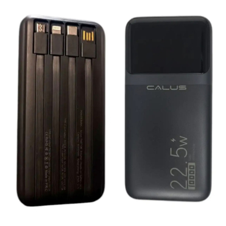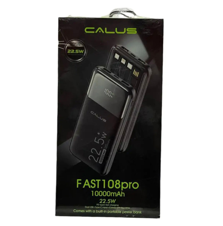پاوربانک نمایشگردار ۲۲/۵وات کالوس مدل FAST108pro ظرفیت 1۰۰۰۰ میلی آمپرساعت با 4 کابل شارژ