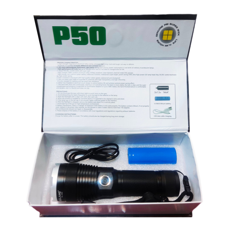 چراغ قوه RL-A82-P50 محصول برند RUILANG می باشد که برای سفر و کمپینگ و ...مناسب می باشد. این چراغ قوه دارای چند حالت نوردهی مختلف (پر نور - متوسط - کم نور - چشمک زن -SOS ) است. پشتیبانی زوم نقطه ای باعث شده برد بالایی داشته باشد و البته نور زیاد خود را مدیون ماژول جدید P50 میباشد که نور بهتر و بیشتری را نسبت به همرده های خود دارد این چراغ قوه از سه نوع باتری 18650 - 28650 و AAA (سه عدد نیم قلمی) پشتیبانی می کند. کابل شارژ تایپ سی به منظور شارژ چراغ و باتری کنار محصول وجود دارد همچنین برای راحتی در حمل چراغ قوه یک عدد بند مخصوص روی محصول قرار داده شده است.