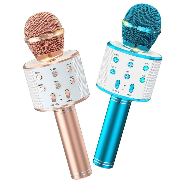 میکروفون اسپیکری مدل WS-858 GODFREY یک میکروفون با قابلیت اتصال بی سیم (بلوتوثی) و باسیم به تلفن های هوشمند اندروید و IOS ، انواع پلیرها و کامپیوتر می باشد. این دستگاه از جنس بهترین مواد ABS و آلومینیوم ساخته شده است . این میکروفون برخورداری از بلوتوث نسخه 3, ,ورودی حافظه فلش یا USB ، شیار مخصوص به کارت حافظه، دارای پورت AUX، باتری لیتیومی قابل شارژ ، رادیو، دکمه های تنظیم صدا، ضبط صدا، کارائوکه، 4 حالت تغییر صدا و... است.