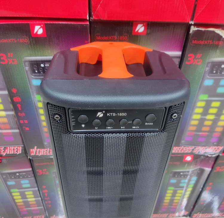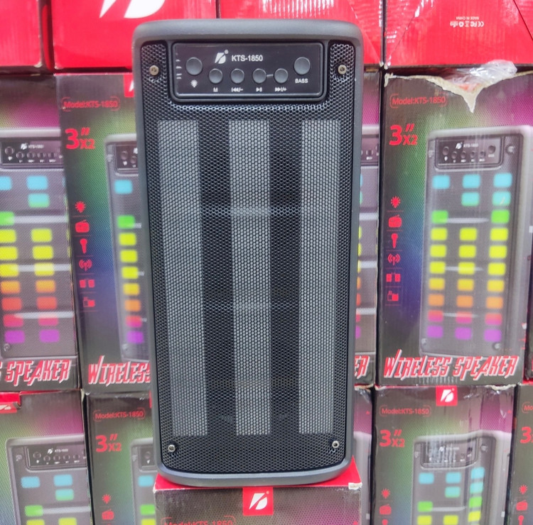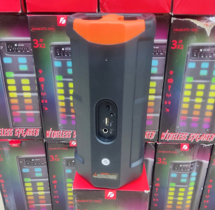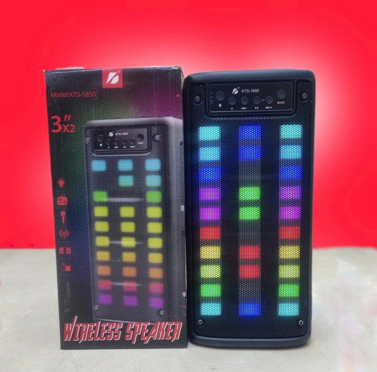 اسپیکر بلوتوثی قابل حمل مدل kts-1850 در ابعاد دو عدد باند ۳ اینچی به بازار ارایه شده است. با این اسپیکر رقص نور زیبا و کیفیت صدایی عالی را میتوانید تجربه کنید. همچنین اسپیکر kts-1850 قابلیت پشتیبانی از کارت حافظه جانبی و فلش مموری را داراست و میتوانید با این اسپیکر لحظات خوشی را در کنار خانواده و مهمانی ها داشته باشید.
